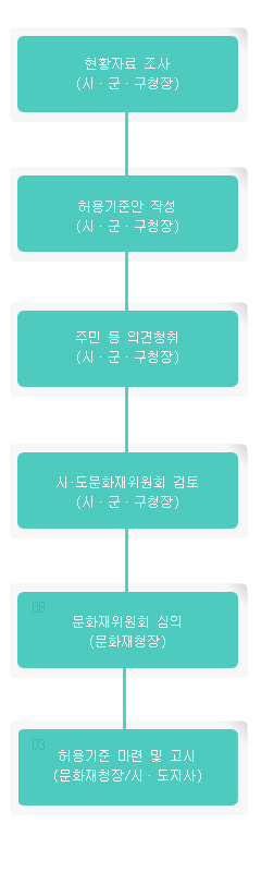 행정기관은 허용기준안, 현황조사 자료, 주민 등의 의견청취 결과, 기타 심의에 필요한 자료를 문화재위원회에 제출한다.